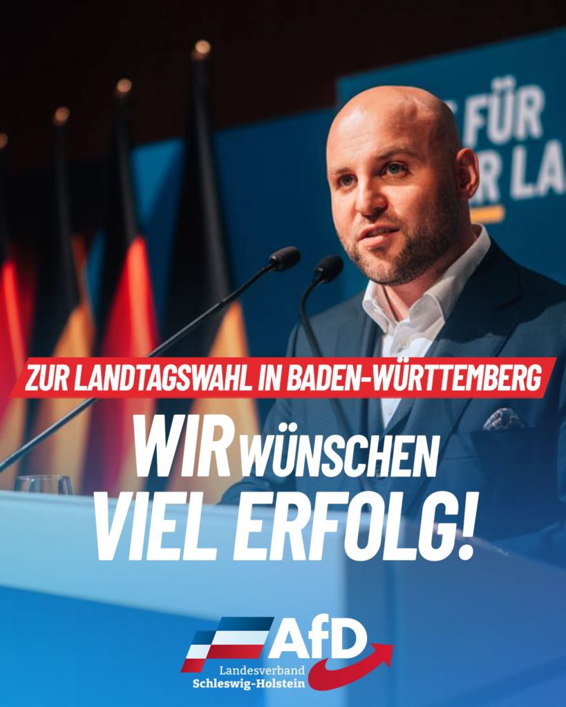 Heute ist ein bedeutender Tag für unser Land und für unsere politische Arbeit. Wir wünschen Markus Frohnmaier und der AfD Baden-Württemberg zur heutigen Landtagswahl von viel Erfolg, Kraft und Zuversicht. Sein engagierter Einsatz, seine klare Haltung und seine Nähe zu den Bürgerinnen und Bürgern haben diesen Wahlkampf geprägt und Maßstäbe gesetzt.
